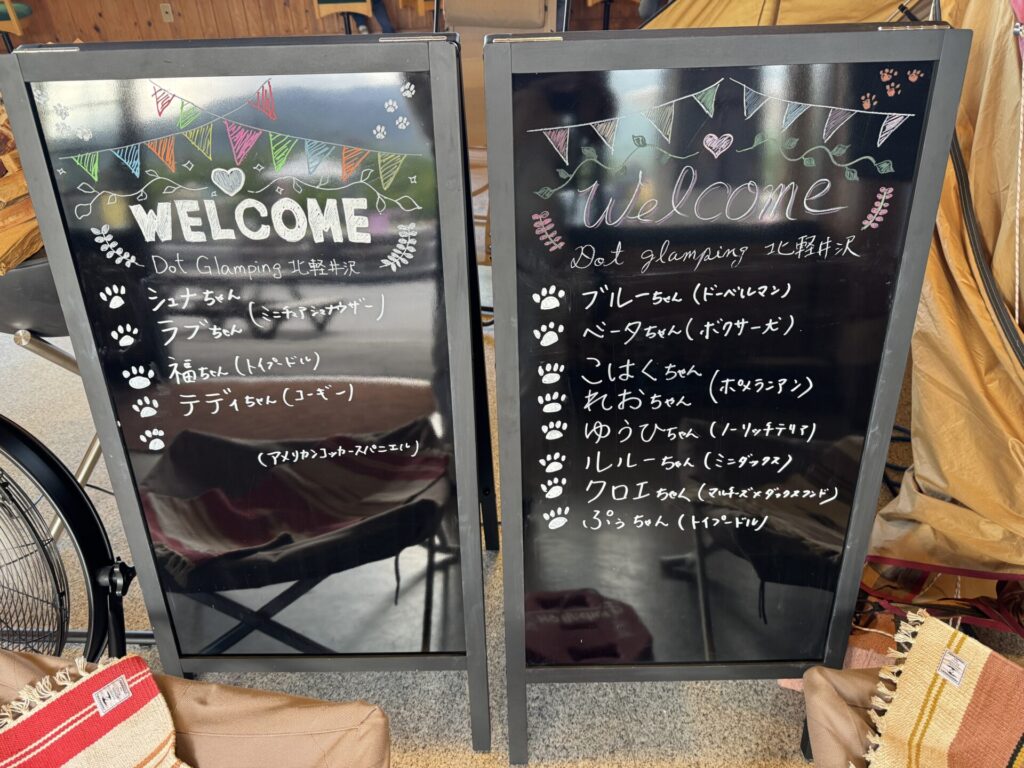 チェックインしてすぐ目に入るのが、ワンコたちの名前が書かれたウェルカムボード。