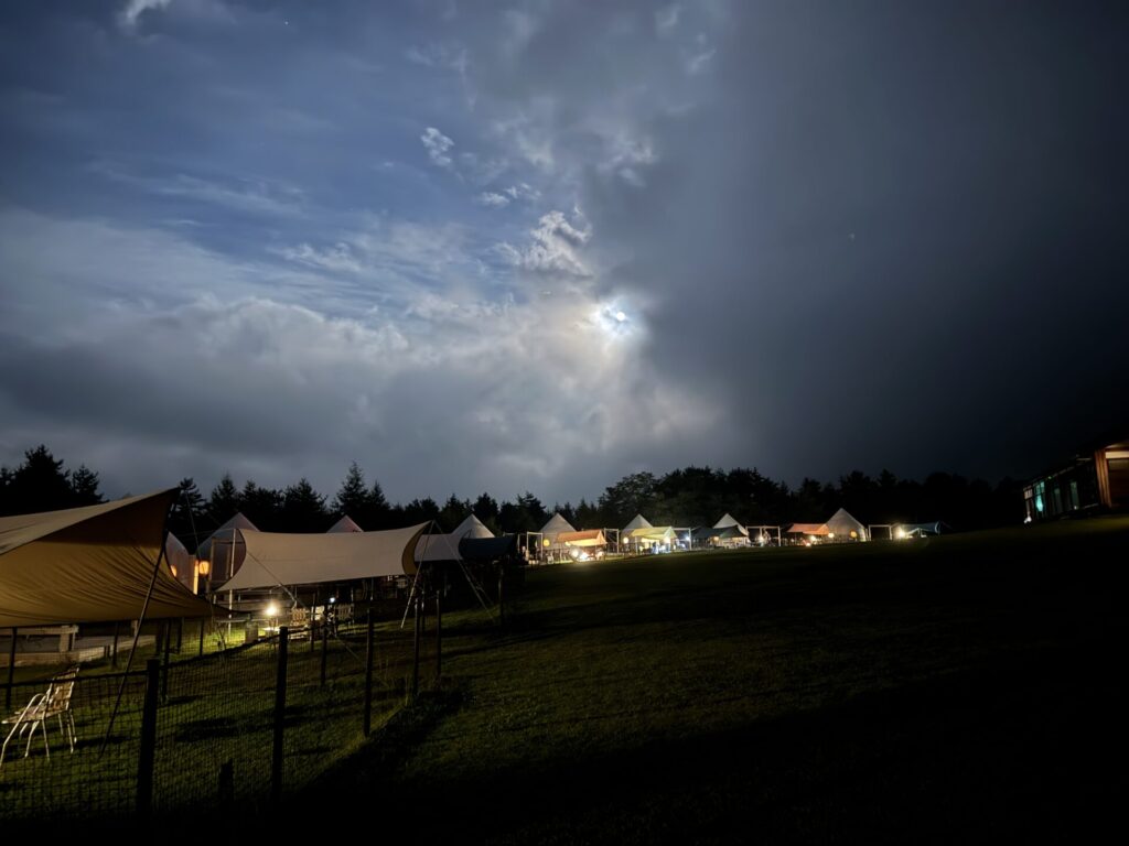 標高約1,400mの涼しい高原に、真っ白なドームテントが並ぶフォトジェニックな空間。